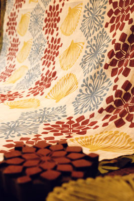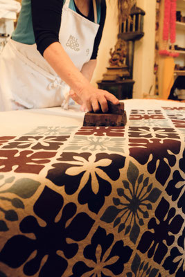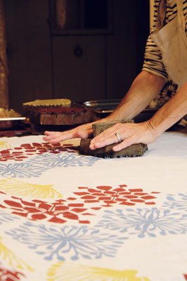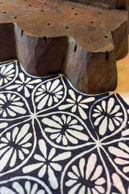 2-Tageskurs mit großen Stempelkissen lernst du die ursprüngliche Blockprint-Technik kennen, perfekt für großflächige Stoffe wie Meterware, Tischwäsche oder Servietten.