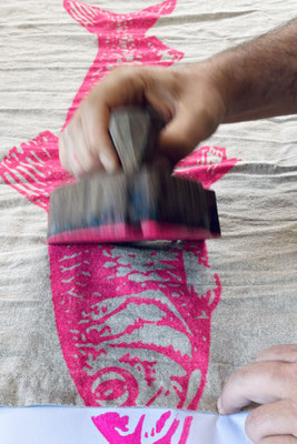 Lerne die Technik des Holzstempeldruckes.